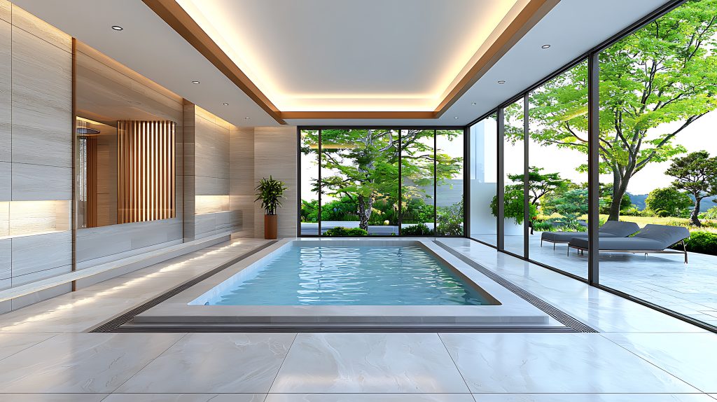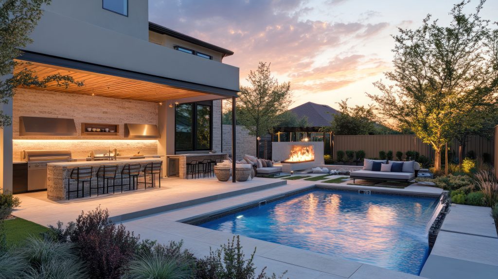 • Pool decks, landscaping, lighting, outdoor kitchen, fire pits, etc.